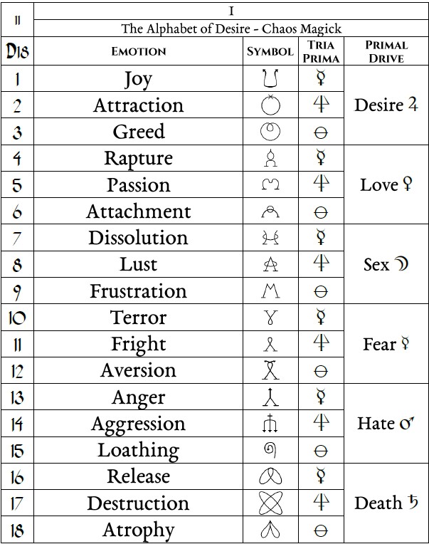 -Added Chaos Magick's & Peter J. Carrols Alphabet of Desire from Liber Null & Psychonaut